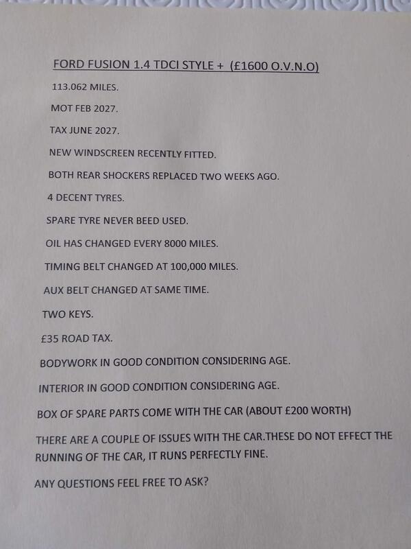 Ford Fusion 1.4 2 Hatchback 5dr Petrol Manual (158 g/km, 79 bhp)