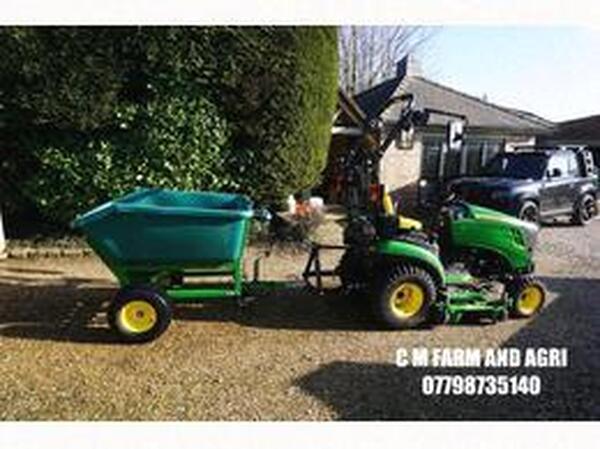 *NO VAT* NEVER USED - I HAVE 2 FOR SALE - JOHN DEERE EXTRA LARGE 500ltr 500kg HARD POLYETHYLENE HYDRAULIC TIPPING WHEEL BARROW with ELECTRICS, 50mm TOW HITCH & JOCKEY WHEEL WITH METAL FRAME IDEAL FOR GIRLS ON TH...