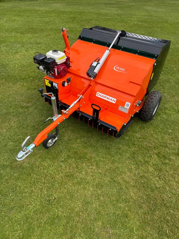 Honda GX200 Electric Start Engine, 1.2M Working Width, Large ATV Wheels and Tyres, Electric Tipping 530L Hopper, 50mm Socket for Towing, Remote Throttle and Control Box for Emptying, This Chapman PC120 p...