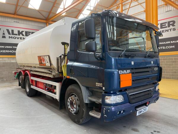2014 Daf CF75.310 6x2 Fuel Tanker • 19,000 litre aluminium tanker barrel. • Four compartments – 5,000/3,000/6,000/5,000 litres • Manual gearbox • Euro 6 specification • Fitted with front mounted delivery hose and ...